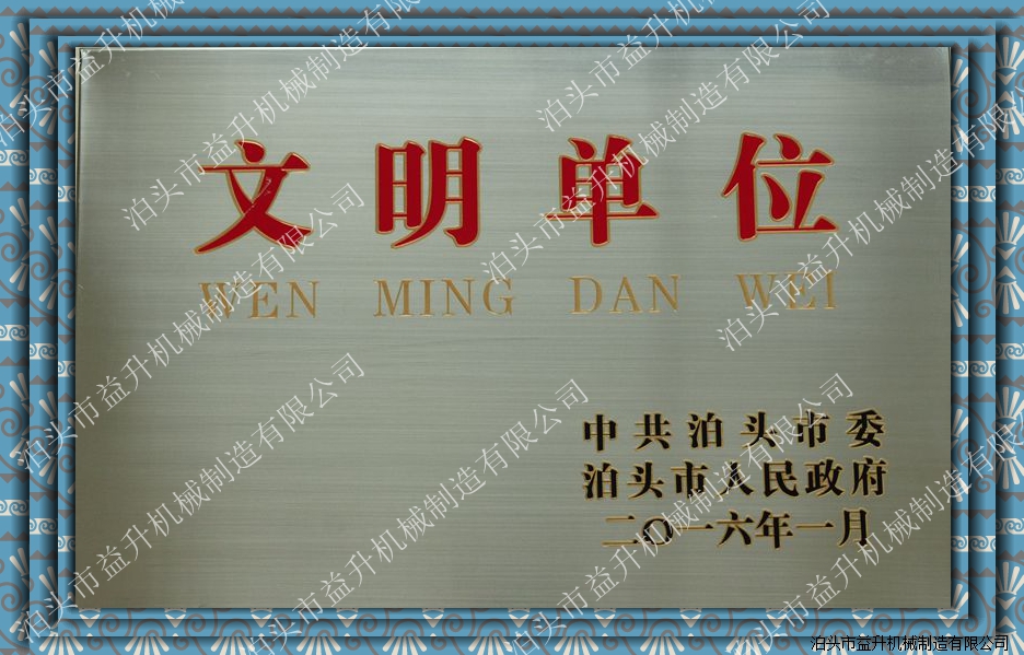 泊头益升机械制造公司荣誉证书